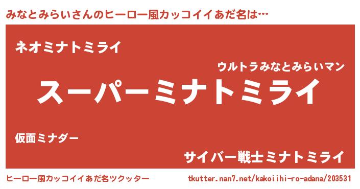 みなとみらいさんのヒーロー風カッコイイあだ名をツクッター!