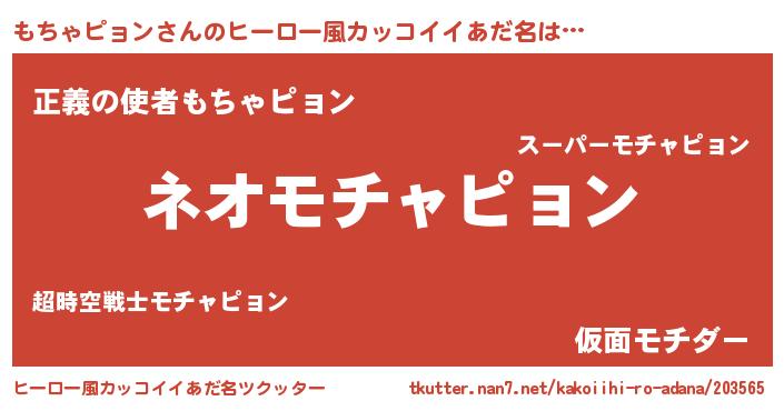 | 男性向けラノベタイトル風あだ名 | 『もちゃピョンという概念が存在しない退屈な世界 』 |