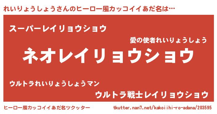 | 男性向けラノベタイトル風あだ名 | 『れいりょうしょうという概念が存在しない退屈な世界 』 |