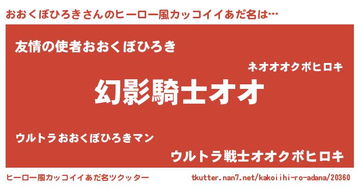 | 男性向けラノベタイトル風あだ名 | 『おおくぼひろきの嫁は女の子じゃないと思った?』 |
