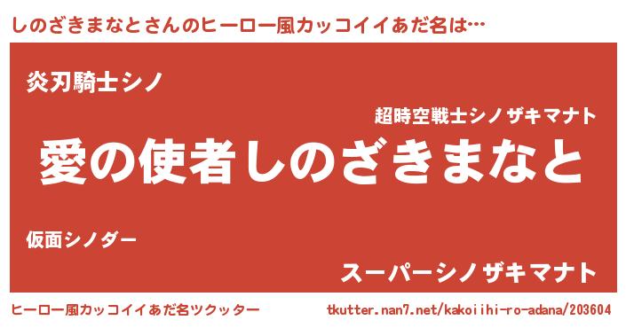 | 女子向けラノベタイトル風あだ名 | 『しのざきまなと恋絵巻』 |