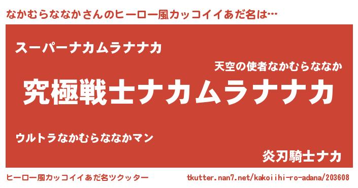 | 男性向けラノベタイトル風あだ名 | 『Re:なかむらななかから始める異世界生活』 |