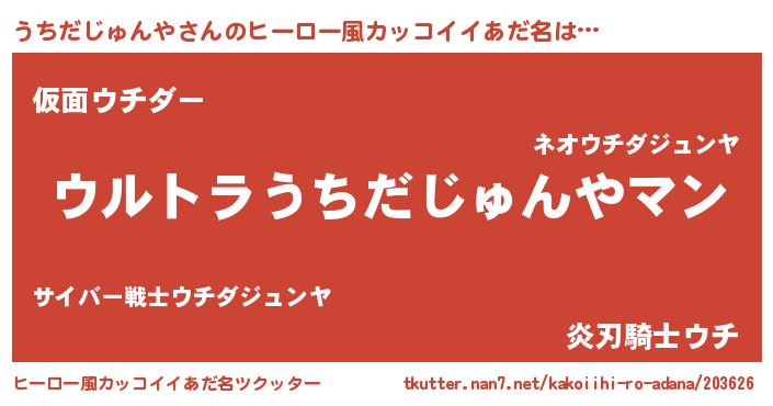 | 男性向けラノベタイトル風あだ名 | 『やはりうちだじゅんやの青春ラブコメはまちがっている 』 |