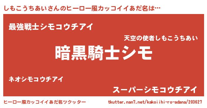 | 意味不明あだ名 | 『とにかく怪しいしもこうちあい』 |