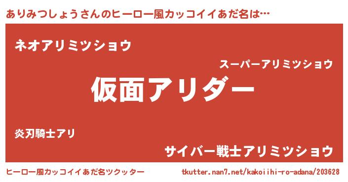 | 意味不明あだ名 | 『住所不定無職ありみつしょう(11歳)』 |