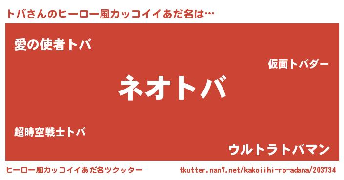 | ヘコむあだ名 | 『トバ(爆)』『豆乳』『トバを』 |