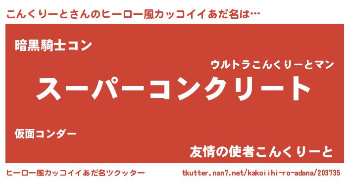 こんくりーとさんのヒーロー風カッコイイあだ名をツクッター!