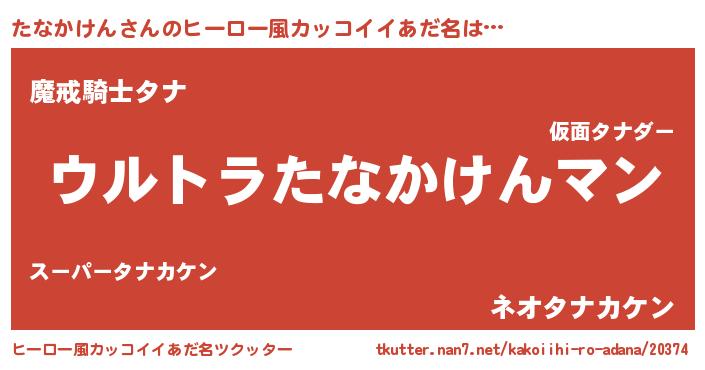 | 男性向けラノベタイトル風あだ名 | 『やはりたなかけんの青春ラブコメはまちがっている 』 |