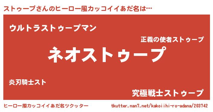 | 男性向けラノベタイトル風あだ名 | 『ストゥープという概念が存在しない退屈な世界 』 |