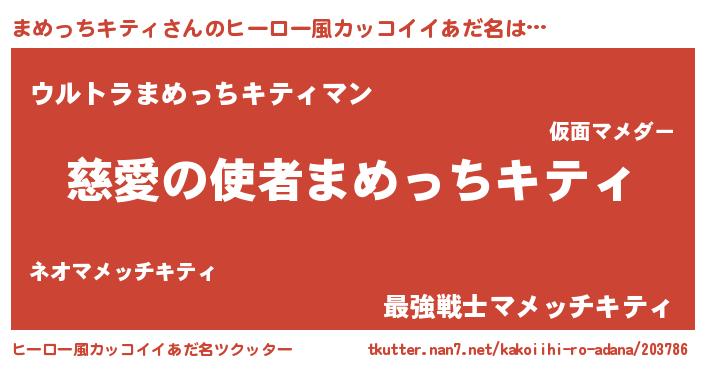 | 男性向けラノベタイトル風あだ名 | 『ノーゲーム・ノーマメッチキティ』 |