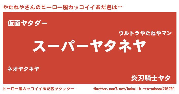 | 自動車の名前っぽいあだ名 | 『ランヤタギーニ』『ヤタティマ』 |