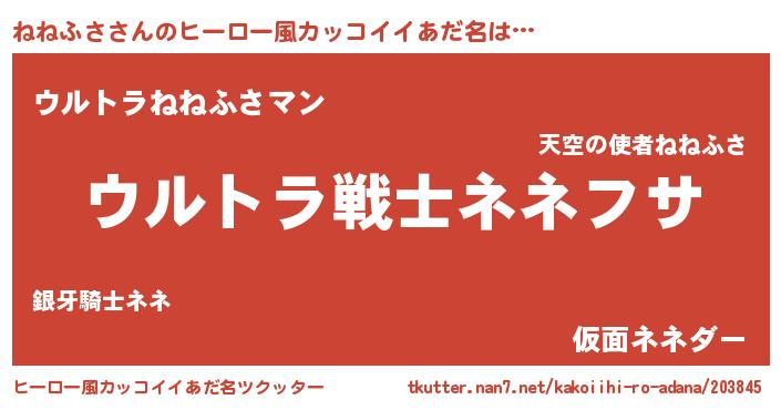 | 男性向けラノベタイトル風あだ名 | 『魔法科高校のねねふさ』 |