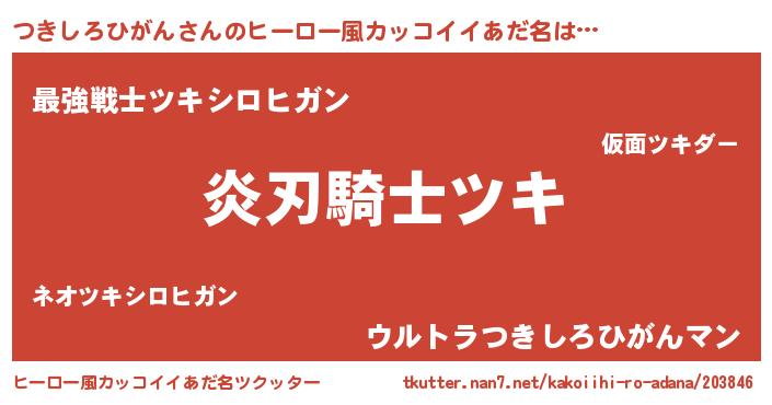 | 男性向けラノベタイトル風あだ名 | 『つきしろひがん~年齢イコール彼女いない歴の魔法使い~』 |