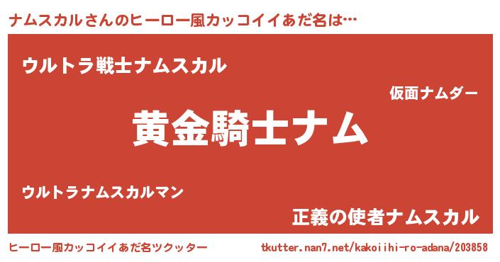 | 胡散臭い通販商品みたいなあだ名 | 『信頼と実績のサプリメント…その名も「ナムスカル」』 |