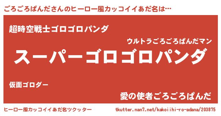 | 男性向けラノベタイトル風あだ名 | 『転生したらごろごろぱんだだった件』 |