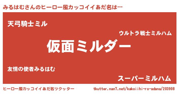 | 意味不明あだ名 | 『住所不定無職みるはむ(91歳)』 |