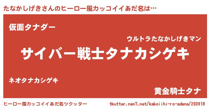 | 女子向けラノベタイトル風あだ名 | 『闇のたなかしげき』 |