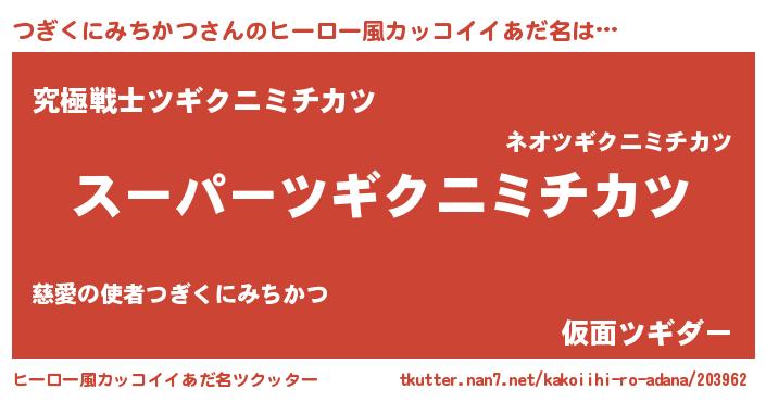 | 胡散臭い通販商品みたいなあだ名 | 『億万長者になれるブレスレット…その名も「つぎくにみちかつ」』 |