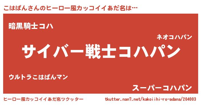 | 胡散臭い通販商品みたいなあだ名 | 『テレビで話題の高麗人参…その名も「こはぱん」』 |