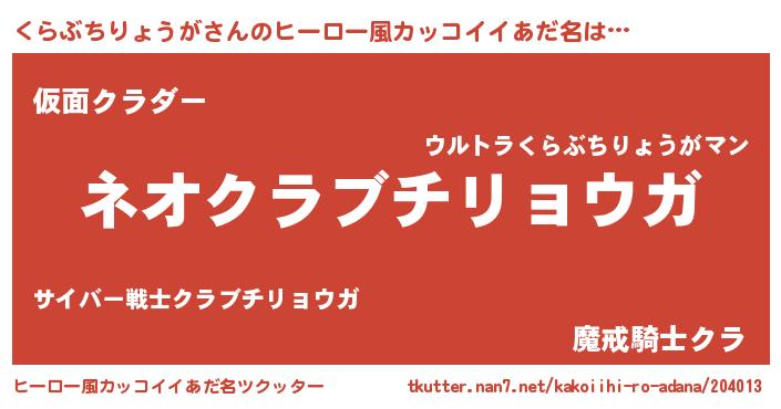 | 意味不明あだ名 | 『永久保存くらぶちりょうが』 |