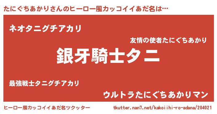 | 女子向けラノベタイトル風あだ名 | 『たにぐちあかりの卵を拾いまして』 |