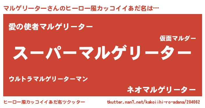 | 男性向けラノベタイトル風あだ名 | 『マルゲリーターの憂鬱』 |