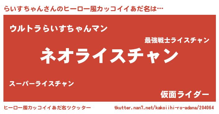 | ヘコむあだ名 | 『らいすちゃん(笑)』『酢こんぶ』 |