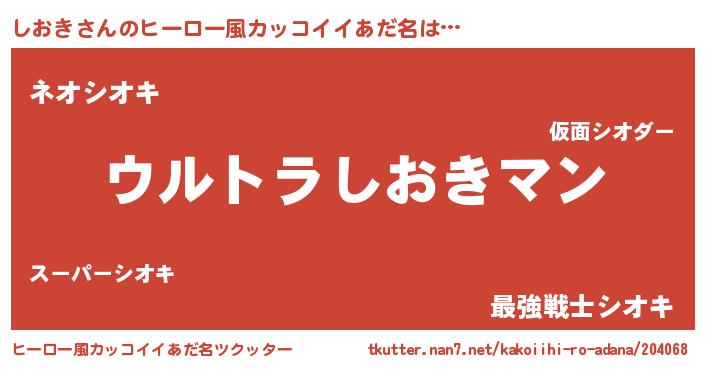 | 女子向けラノベタイトル風あだ名 | 『しおきの雑貨屋さん』 |