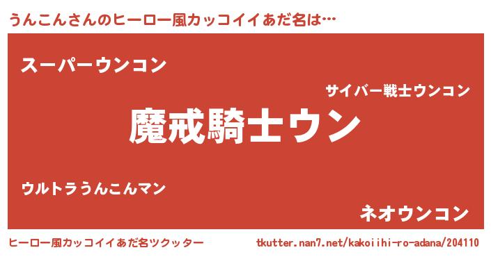 | 女子向けラノベタイトル風あだ名 | 『うんこんの卵を拾いまして』 |