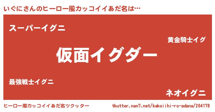 | 意味不明あだ名 | 『住所不定無職いぐに(43歳)』『自称いぐに』 |