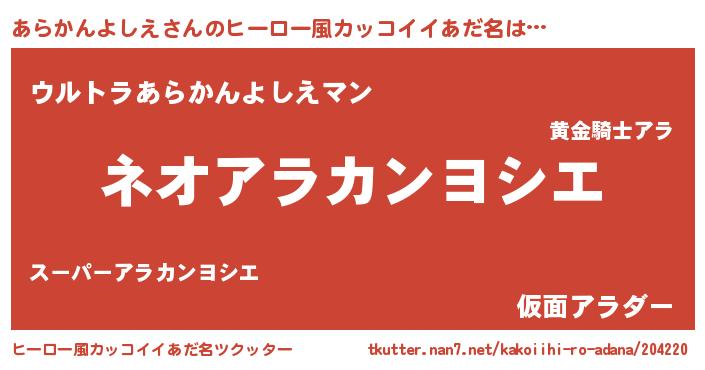 | 意味不明あだ名 | 『永久保存あらかんよしえ』 |