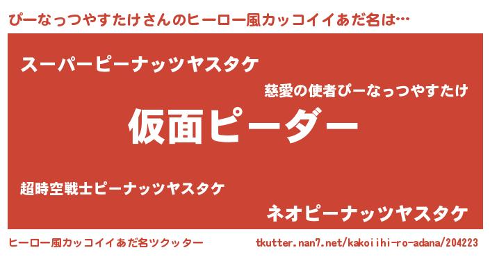 | 料理風あだ名 | 『ぴーなっつやすたけごはん』 |