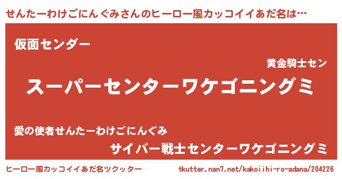 | 恥ずかしいあだ名 | 『プリティーせんたーわけごにんぐみ』 |
