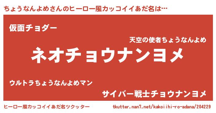 | ヘコむあだ名 | 『ちょうなんよめ(小並感)』『豆乳』 |