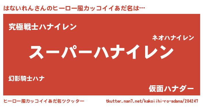 | 男性向けラノベタイトル風あだ名 | 『ハナイレンアートオンライン』 |
