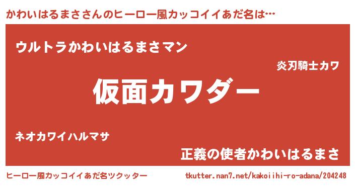 | 男性向けラノベタイトル風あだ名 | 『魔弾の王とかわいはるまさ』 |