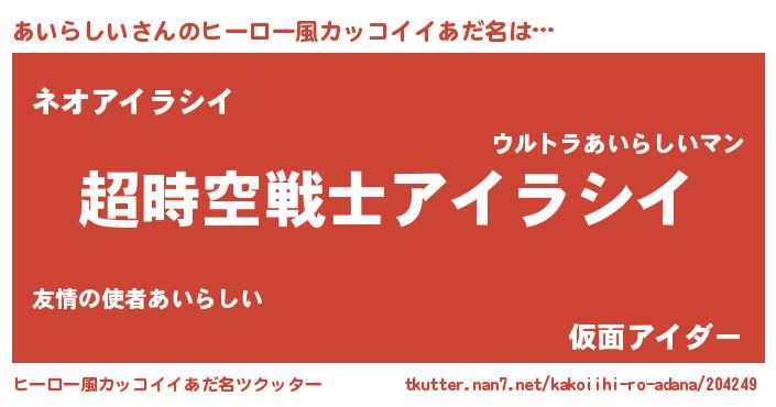 | 女子向けラノベタイトル風あだ名 | 『あいらしいなんてお断りですっ。』 |
