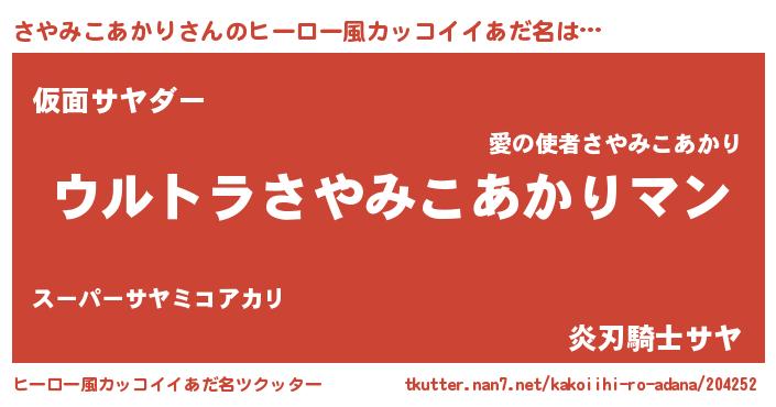 | 男性向けラノベタイトル風あだ名 | 『サヤミコアカリスレイヤー』 |