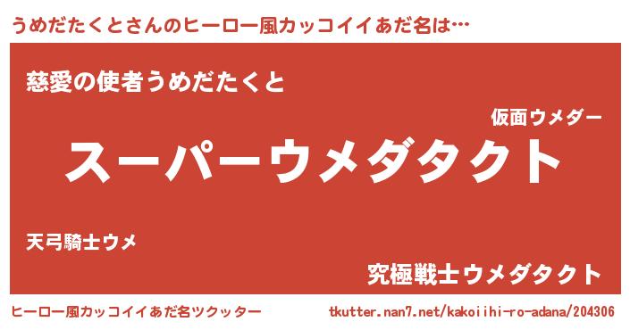 | 胡散臭い通販商品みたいなあだ名 | 『必ず成功するブレスレット…その名も「うめだたくと」』 |