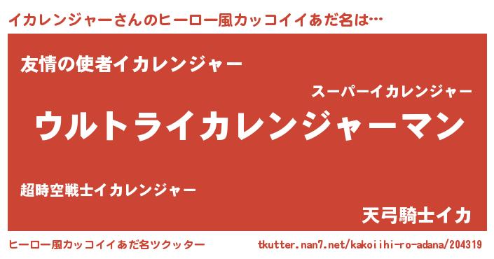 | ファンタジー風あだ名 | 『エターナルイカレンジャーー』 |