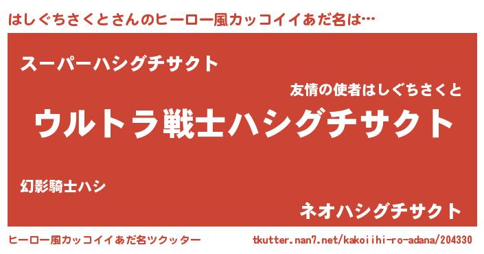 | 男性向けラノベタイトル風あだ名 | 『魔法科高校のはしぐちさくと』 |