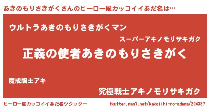 | 男性向けラノベタイトル風あだ名 | 『おまえをオタクにしてやるから、俺をあきのもりさきがくにしてくれ! 』 |