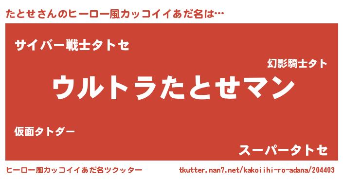 | 欧米人風あだ名 | 『アンジェラ・たとせ』『マイケルたとせ』 |