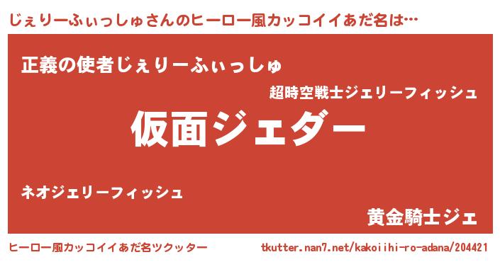 | 男性向けラノベタイトル風あだ名 | 『ジェリーフィッシュスレイヤー』 |