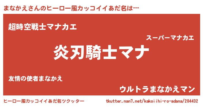 | 意味不明あだ名 | 『とにかく怪しいまなかえ』 |