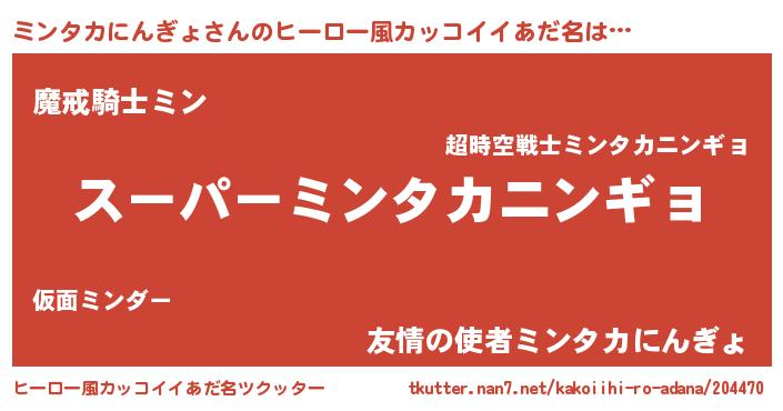 | 男性向けラノベタイトル風あだ名 | 『ミンタカにんぎょ~年齢イコール彼女いない歴の魔法使い~』 |