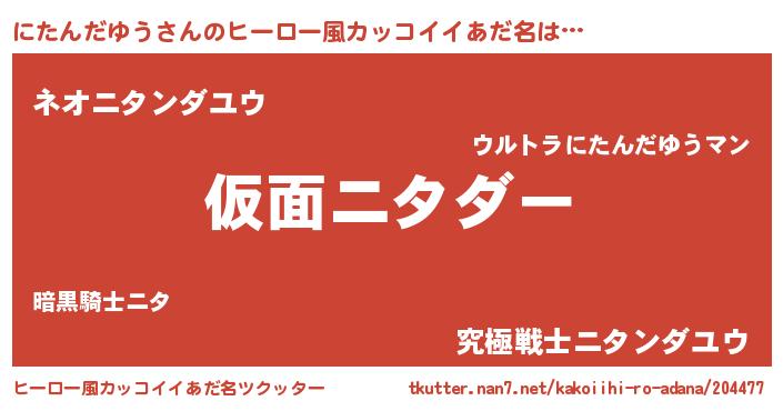 | 男性向けラノベタイトル風あだ名 | 『魔弾の王とにたんだゆう』 |