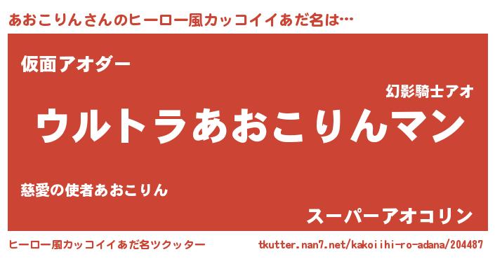 | 男性向けラノベタイトル風あだ名 | 『あおこりん~年齢イコール彼女いない歴の魔法使い~』 |