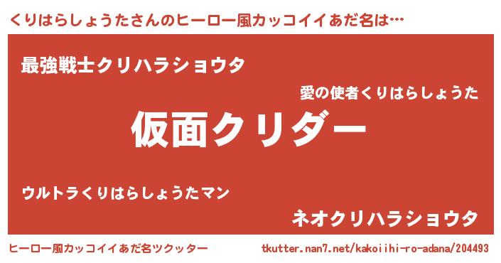 | 意味不明あだ名 | 『住所不定無職くりはらしょうた(59歳)』 |