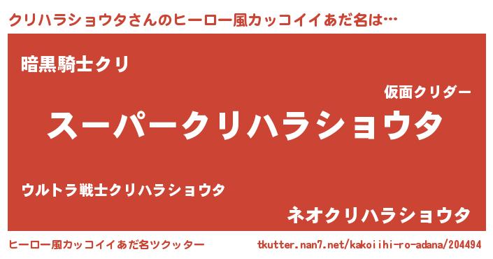 | 男性向けラノベタイトル風あだ名 | 『クリハラショウタアートオンライン』 |
